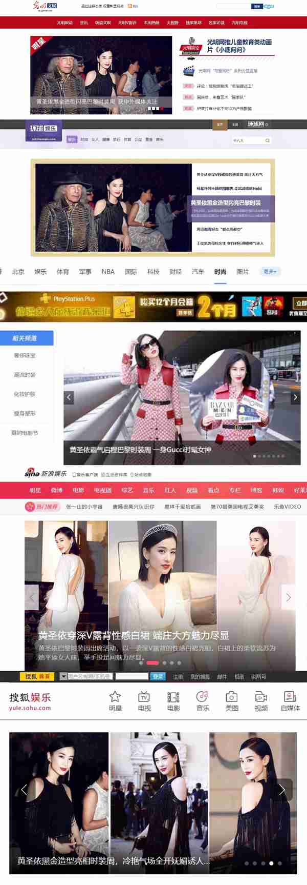 黄圣依在巴黎时装周的动向也受到光明网、新华网、腾讯娱乐、新浪娱乐、搜狐娱乐等主流媒体的关注和报道。
