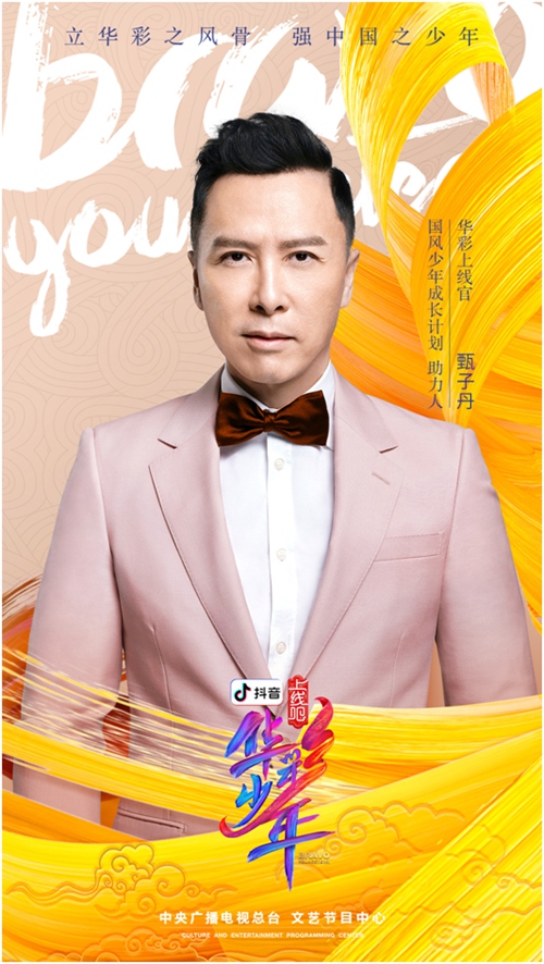 央视首档互动国风少年创意节目《上线吧!少年》也将于近期播出,甄子丹为节目的国风少年成长计划助力官,对少年们进行指导,为少年的成长添彩。节目致力于打造国风文化新符号,全方位展现中国优秀传统文化,节目立意与甄子丹也相当契合,从小出生武术世家便与中国传统武术产生了不解之缘,从影视作品等多方面都一直在坚持对中国传统文化进行表达,并一步步走向了国际舞台,也向全世界观众传递了中国文化及东方角色的独特魅力。