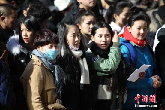 2月15日,考生在北京电影学院等待入场。当日,北京电影学院艺考开始。